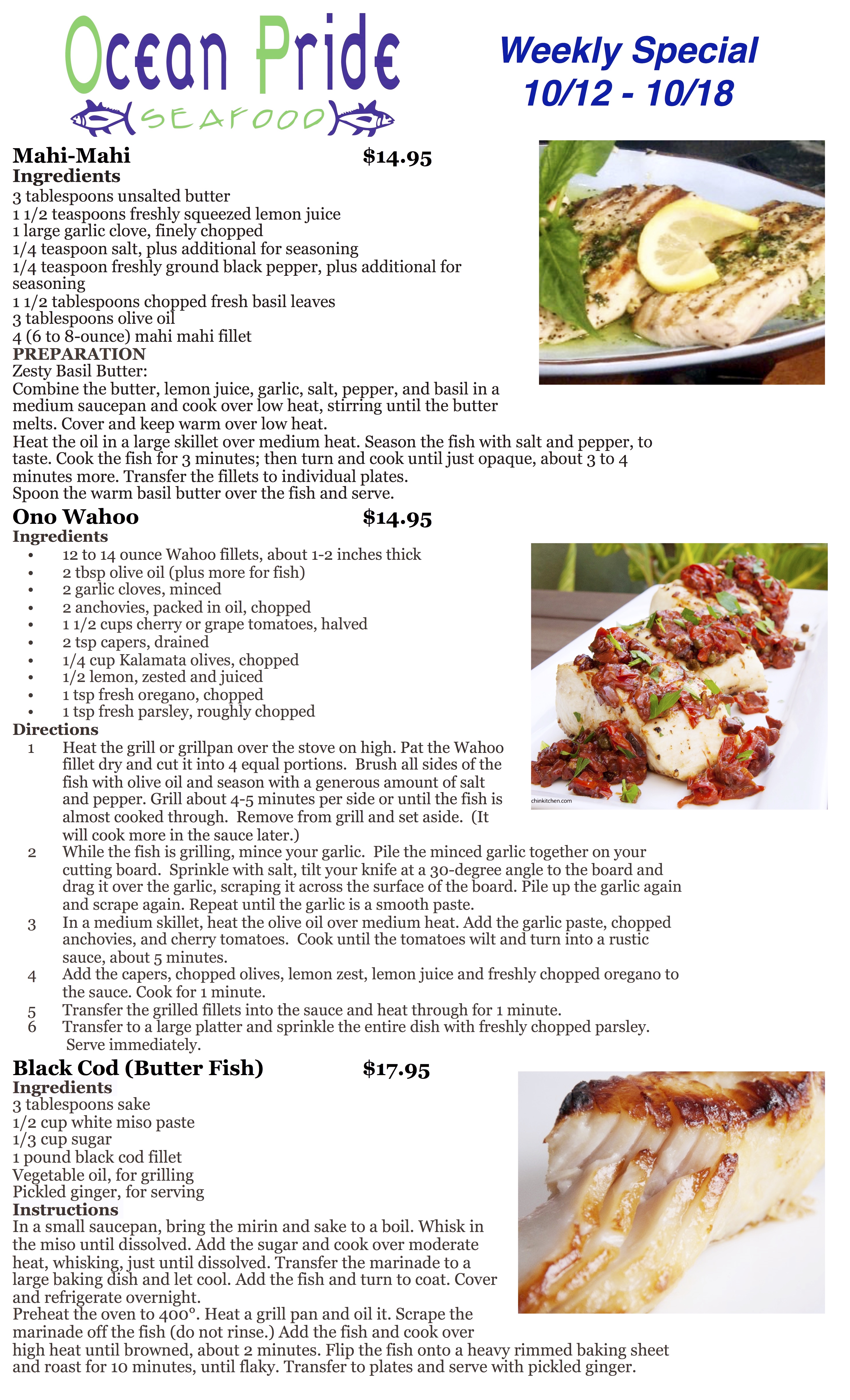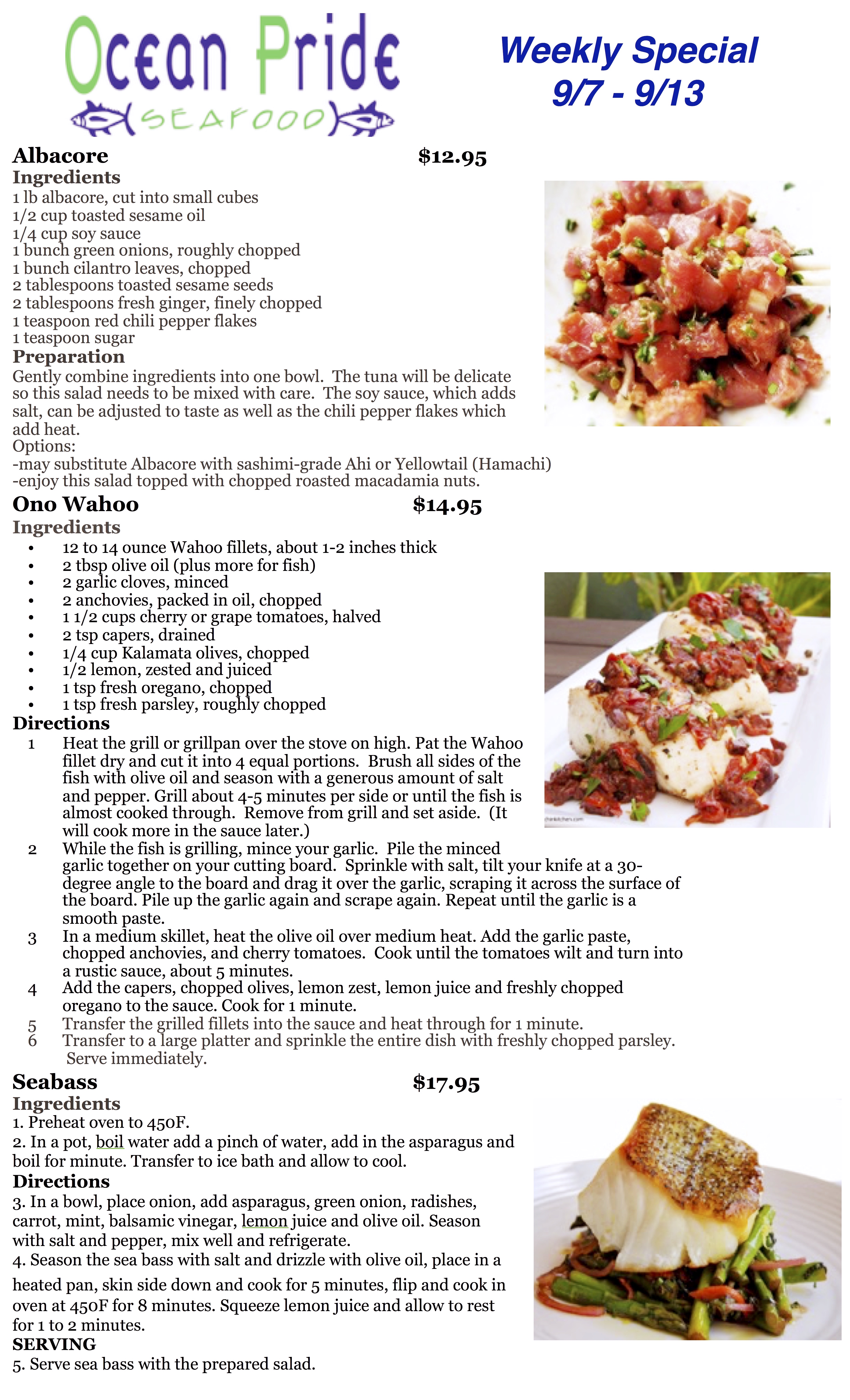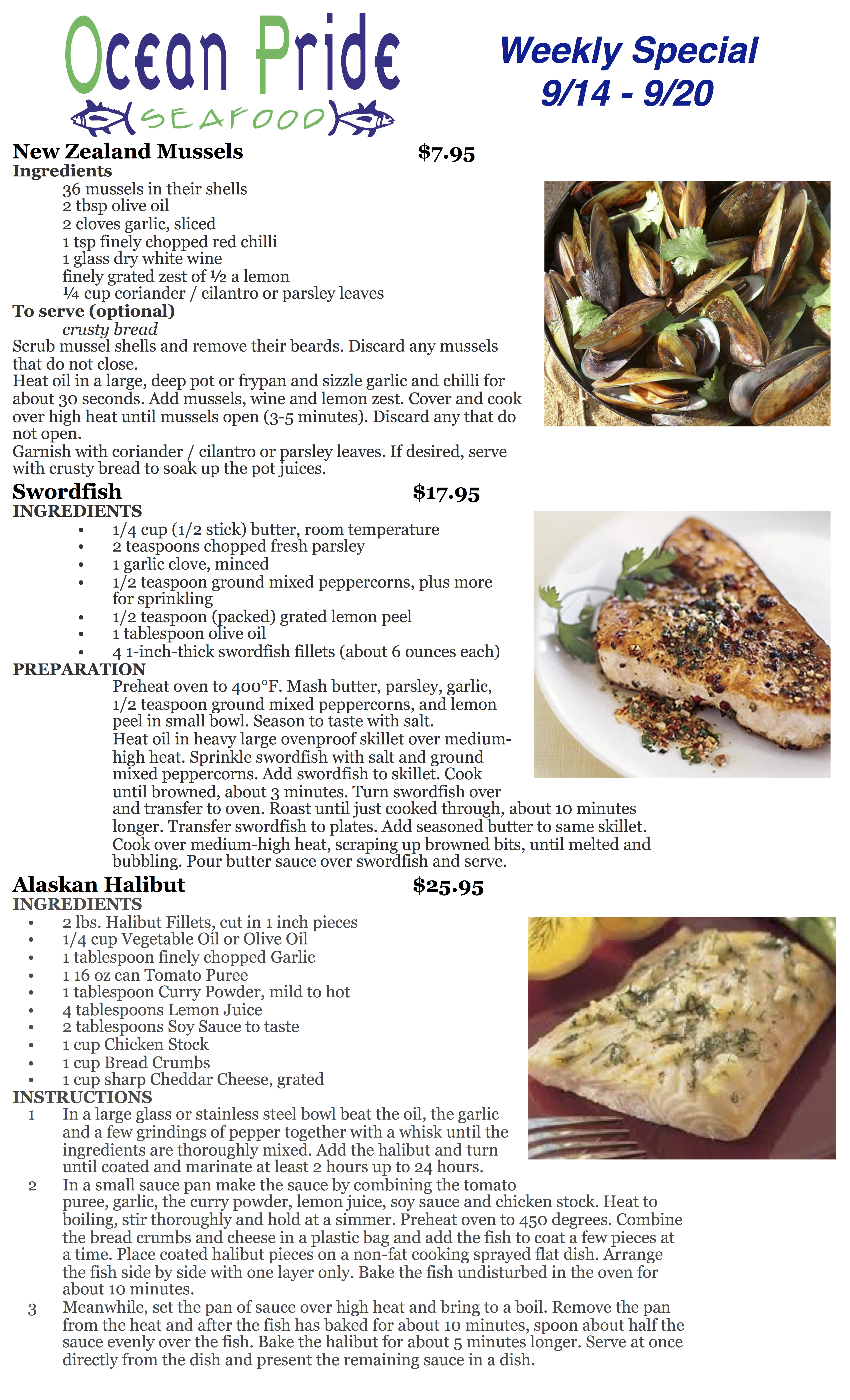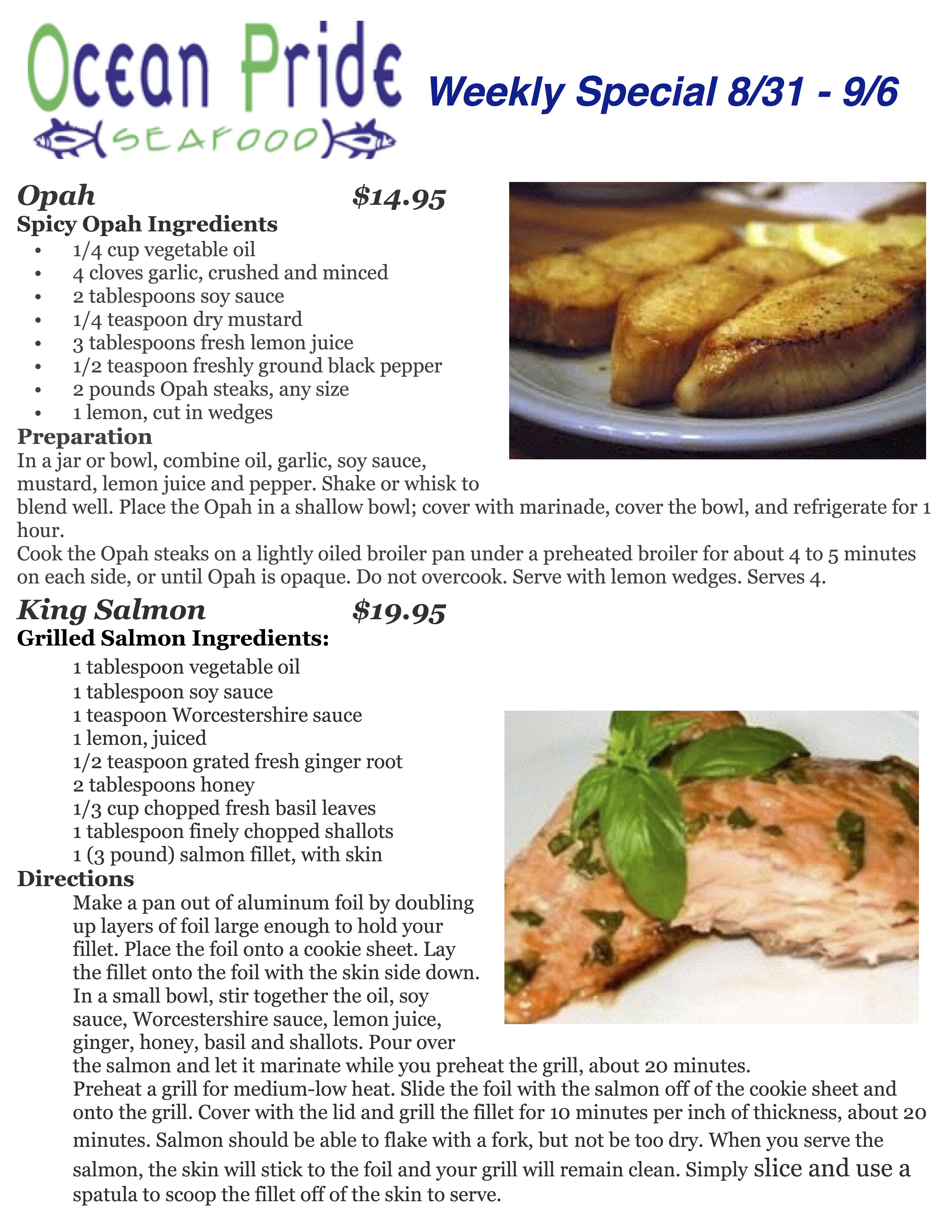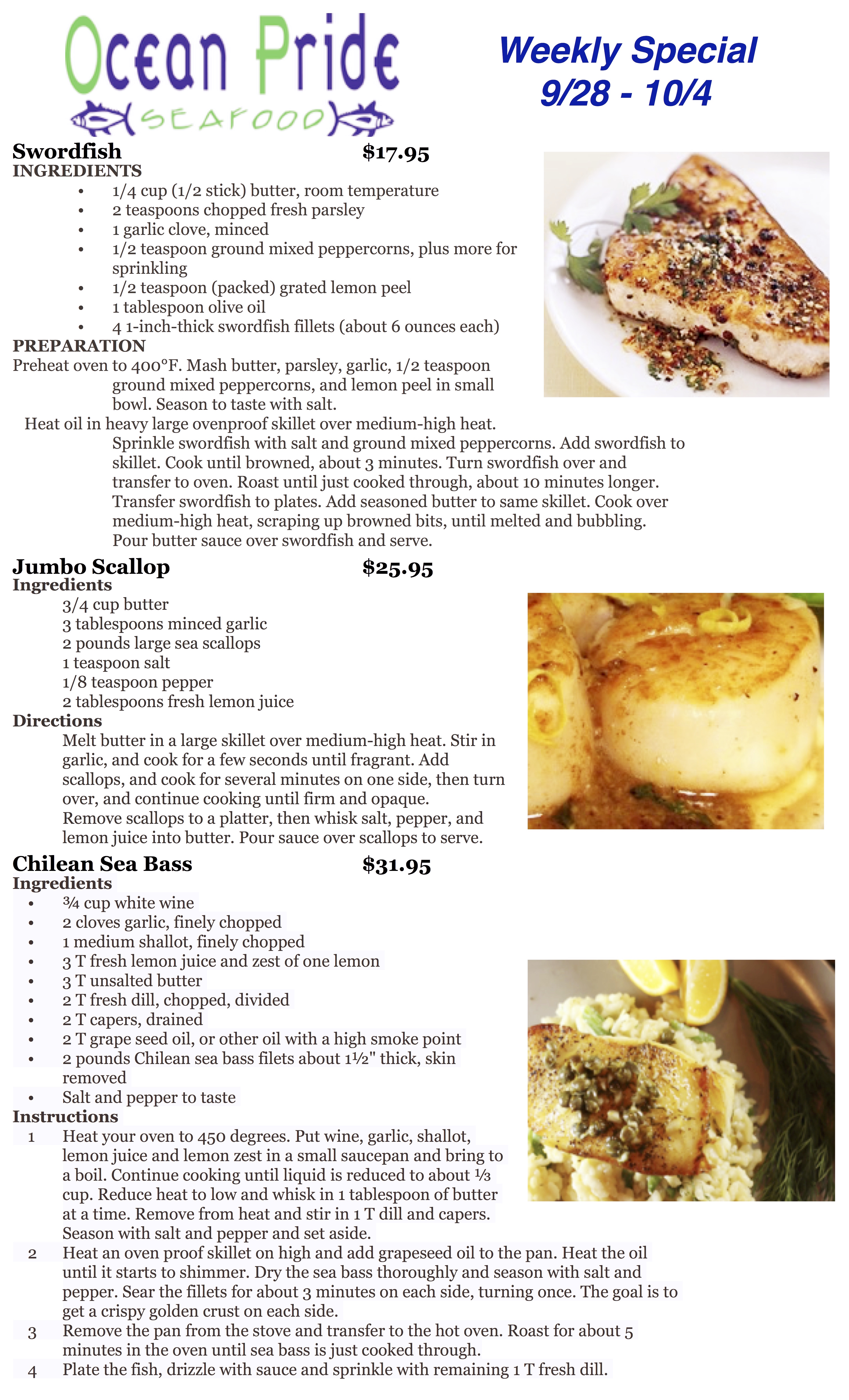 Ocean Pride Seafood Specials 9/14 – 9/20