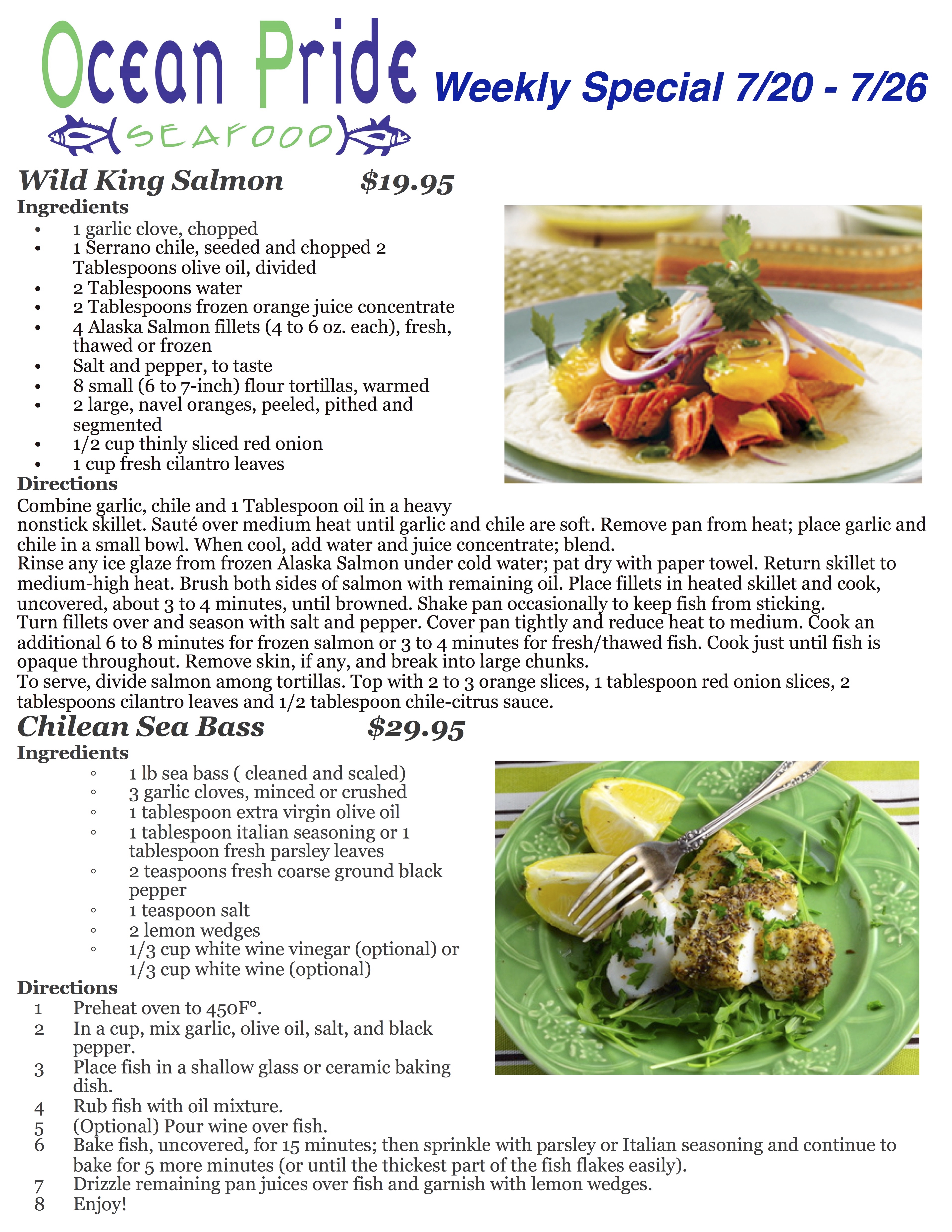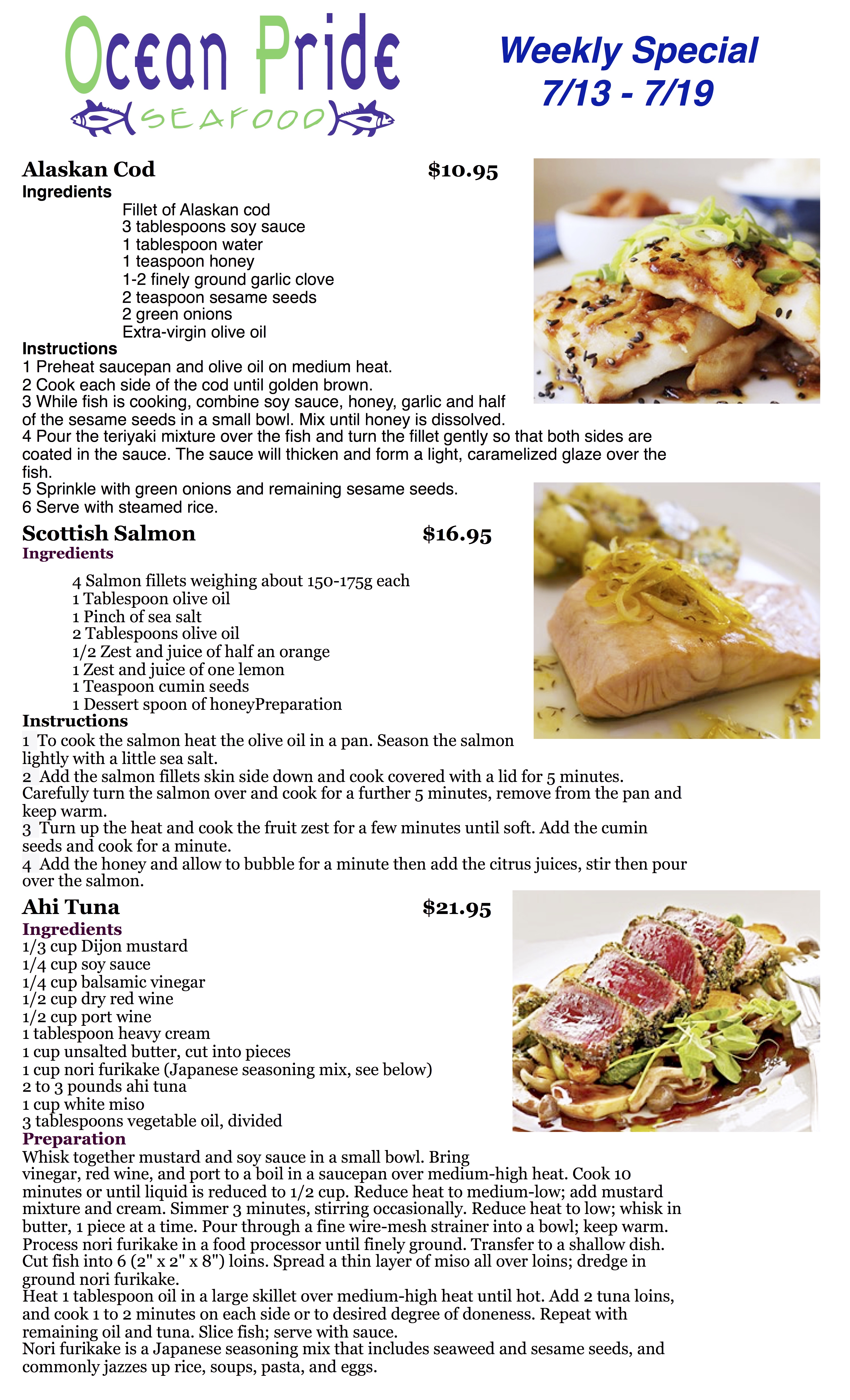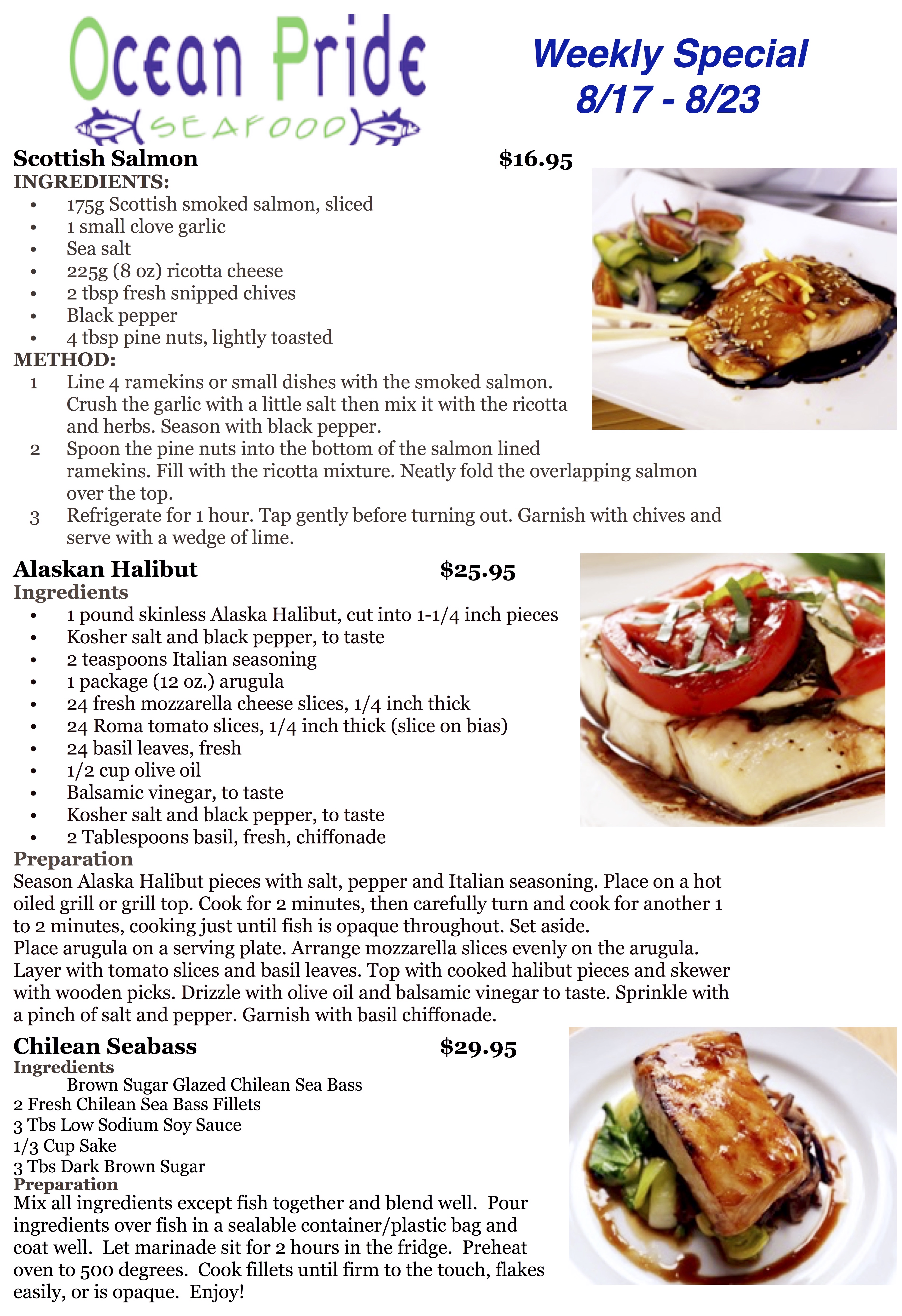 Ocean Pride Seafood Specials 8/3 – 8/9