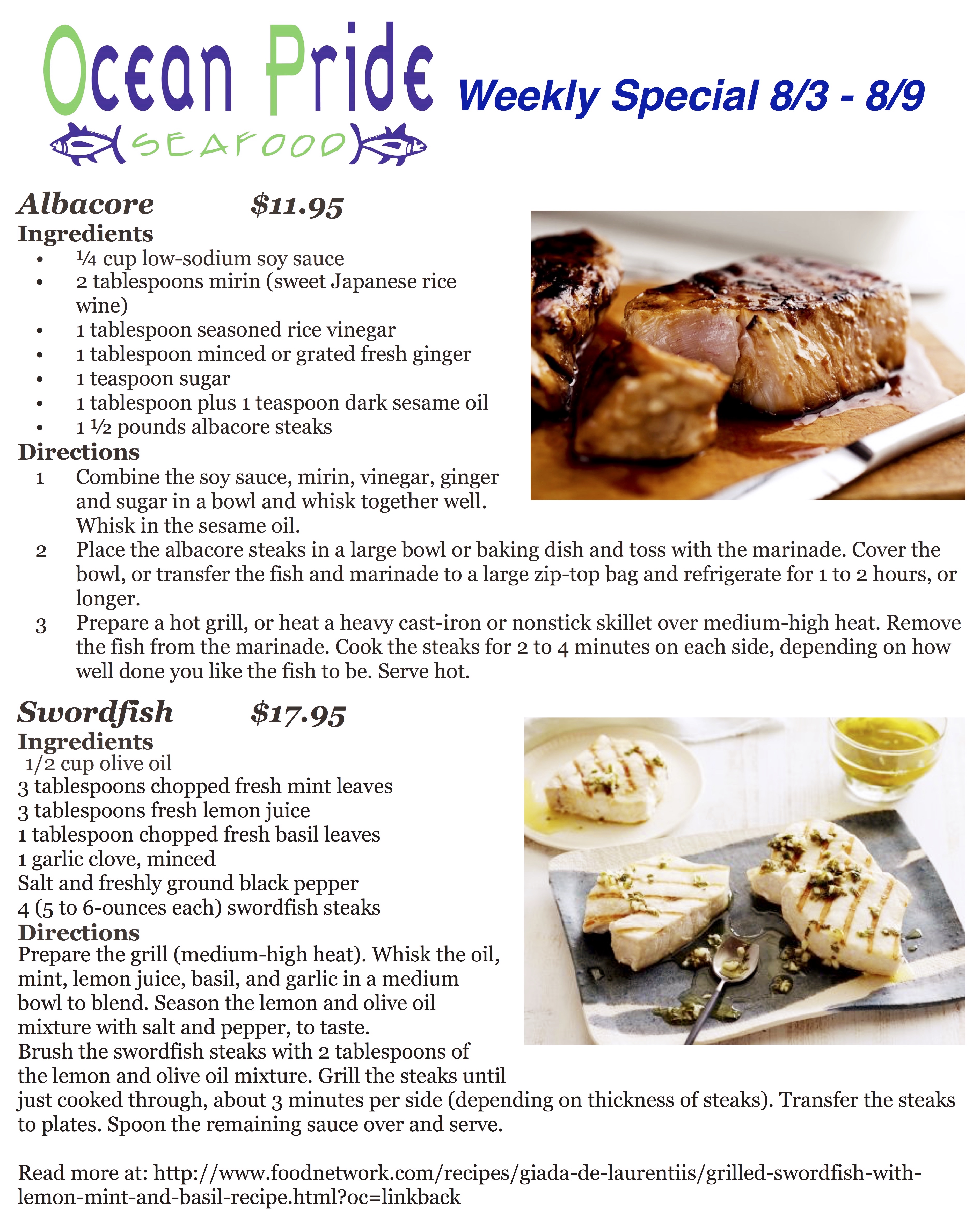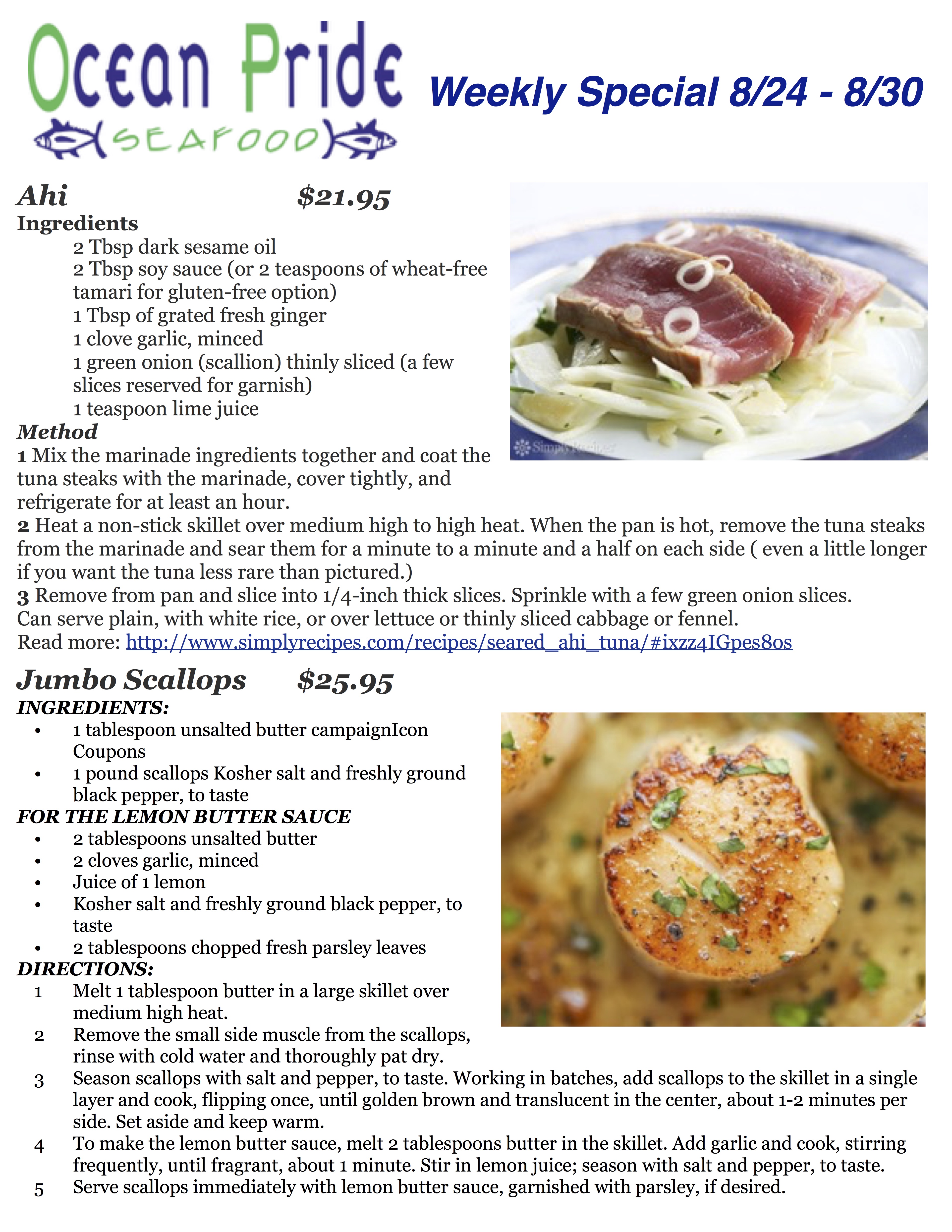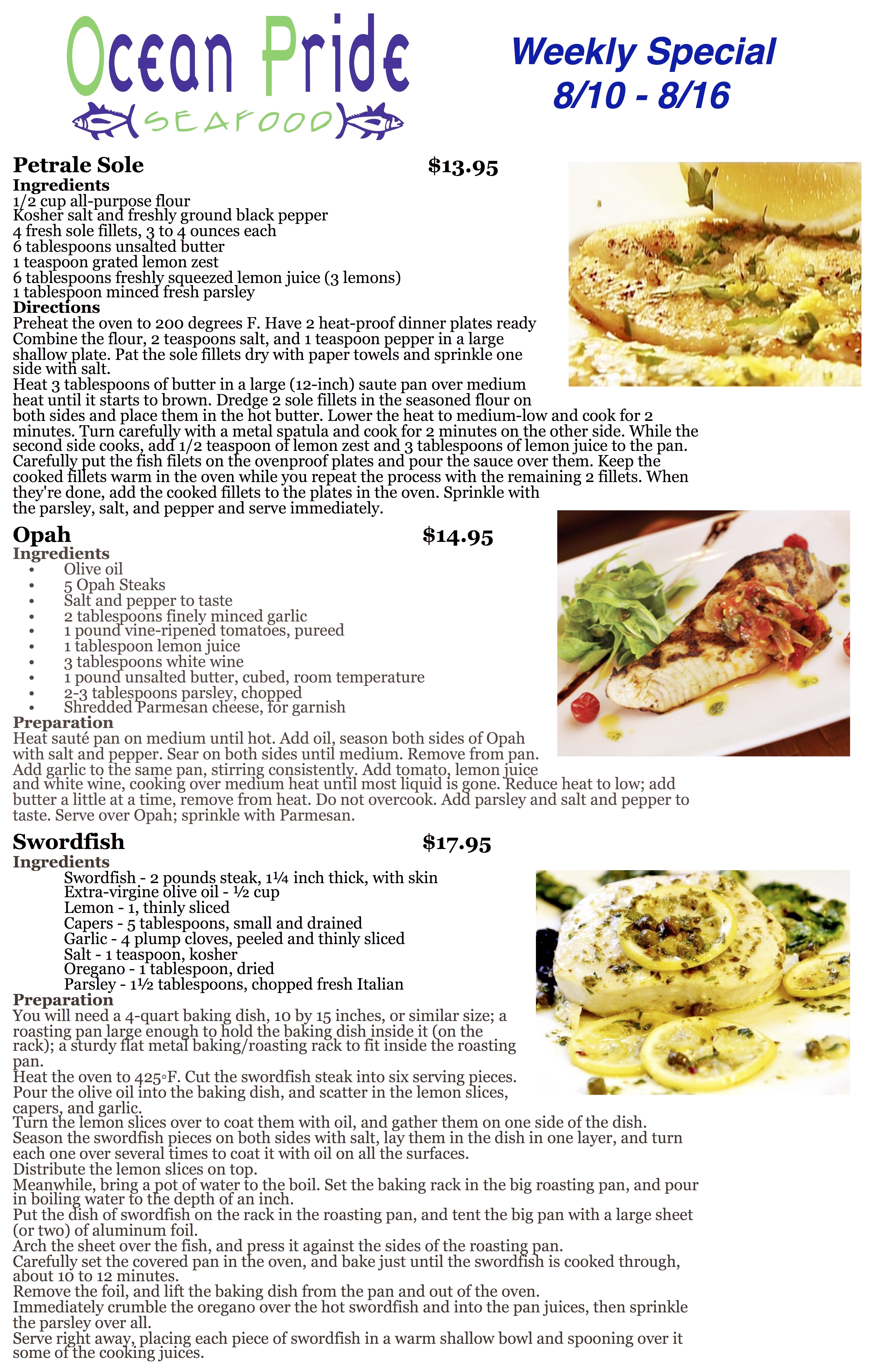 Ocean Pride Seafood Specials 8/3 – 8/9